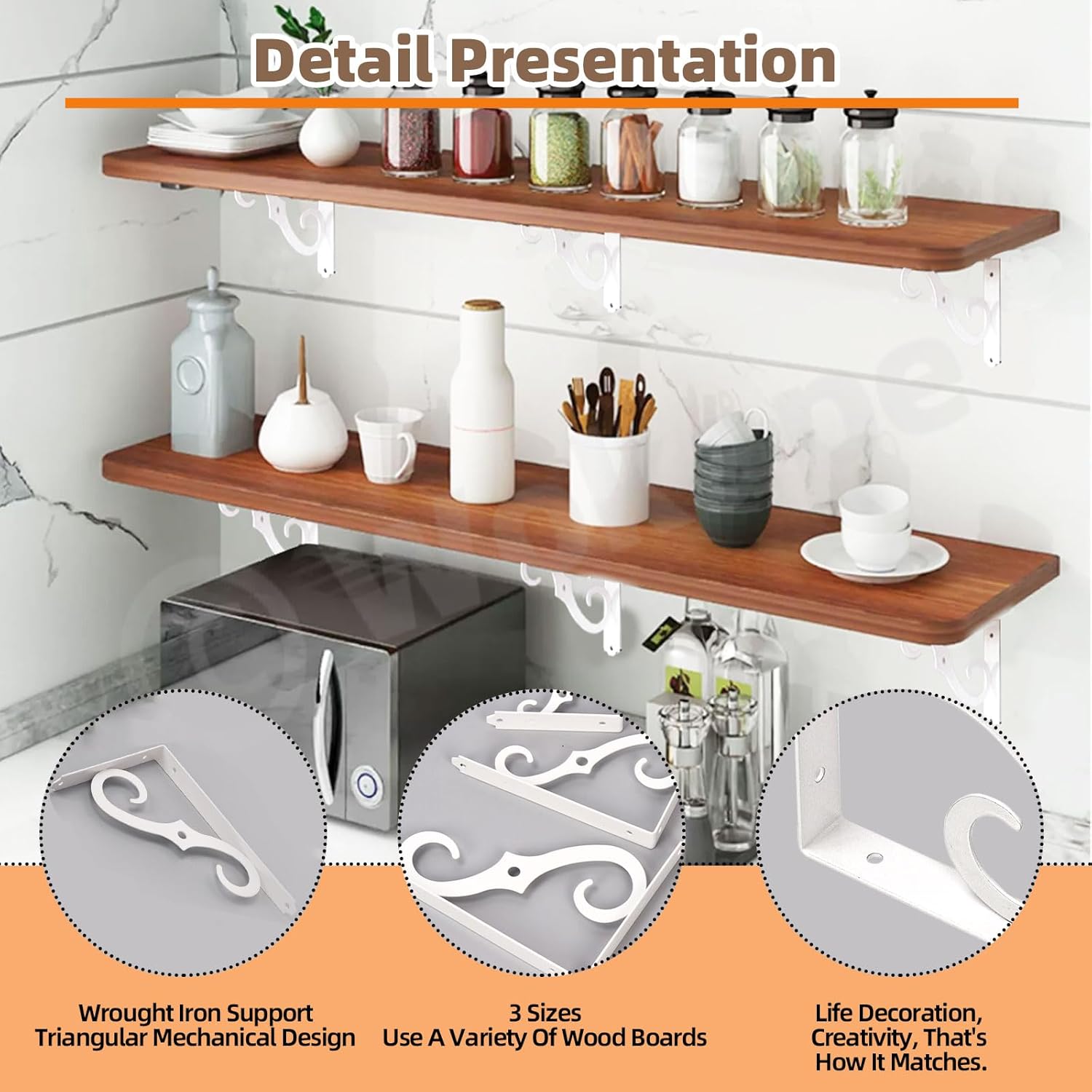 💗Wokape 2 Pack L Bracket Decorative Shelf Brackets 10 Inch White Wall Mounted Floating Shelf Bracket L Shape Heavy Duty Metal Corner Brace Shelf Metal Corner Brace Shelf Supporter with Screws 💗 💗 Why Choose Wokape💗 ・ᴥ ・1.Good Quality ・ᴥ ・ Our heavy duty L corner brace shelf are made of soild iron with glossy white coating in it surface for better rust prevention. And also sturdy and durable. ・ᴥ ・2. Artistic Design ・ᴥ ・ Our L bracket decorative shelf brackets are different with other common L bracket, these decorative shelf brackets comes with retro lines as supporter. More stylish and can better match well with the decor of your home. ・ᴥ ・ 3.different size ・ᴥ ・ We provide you with different size of floating metal brackets for you to choice. 5 Inch for 5"-7" shelf, 8 inch for 8"-10" shelf, 10 inch for 10"-12" shelf. ・ᴥ ・ 4.Please Note ・ᴥ ・ All dimensions are measured manually, there may be measuresment errors, please don't mind. 💗 Specification💗: ✨ Material: Metal ✨ Color: White ✨ Size: 10 Inch ✨ Quantity: 2 Pack 💗 Package Includes💗 ✨ 2 Pack.... White 10 Inch Decorative Shelf Brackets ✨ In total 2 Pack