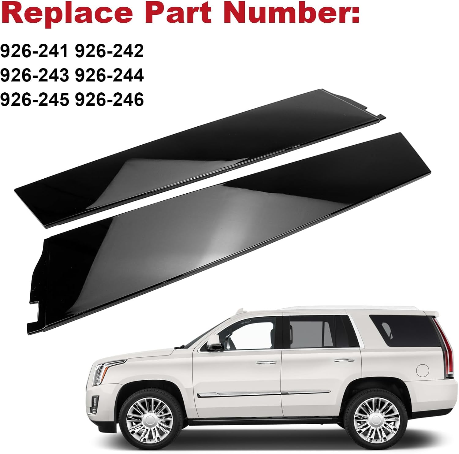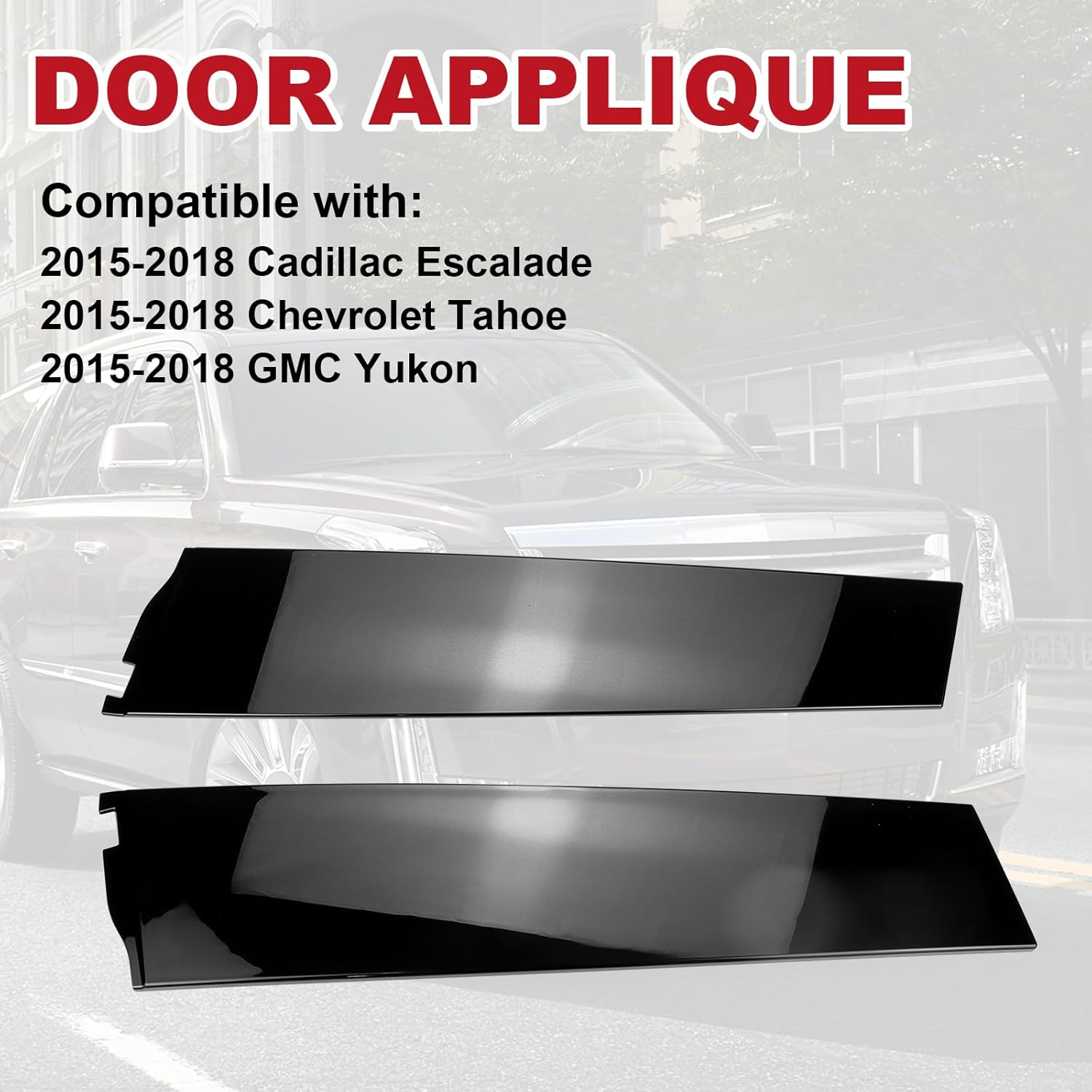 • 【COMPATIBLE WITH】This door window pillar trim fit for Cadillac Escalade 2015-2018 ; For Chevrolet Tahoe 2015-2018 ; For GMC Yukon 2015-2018 ( Not fit for Cadillac Escalade ESV )