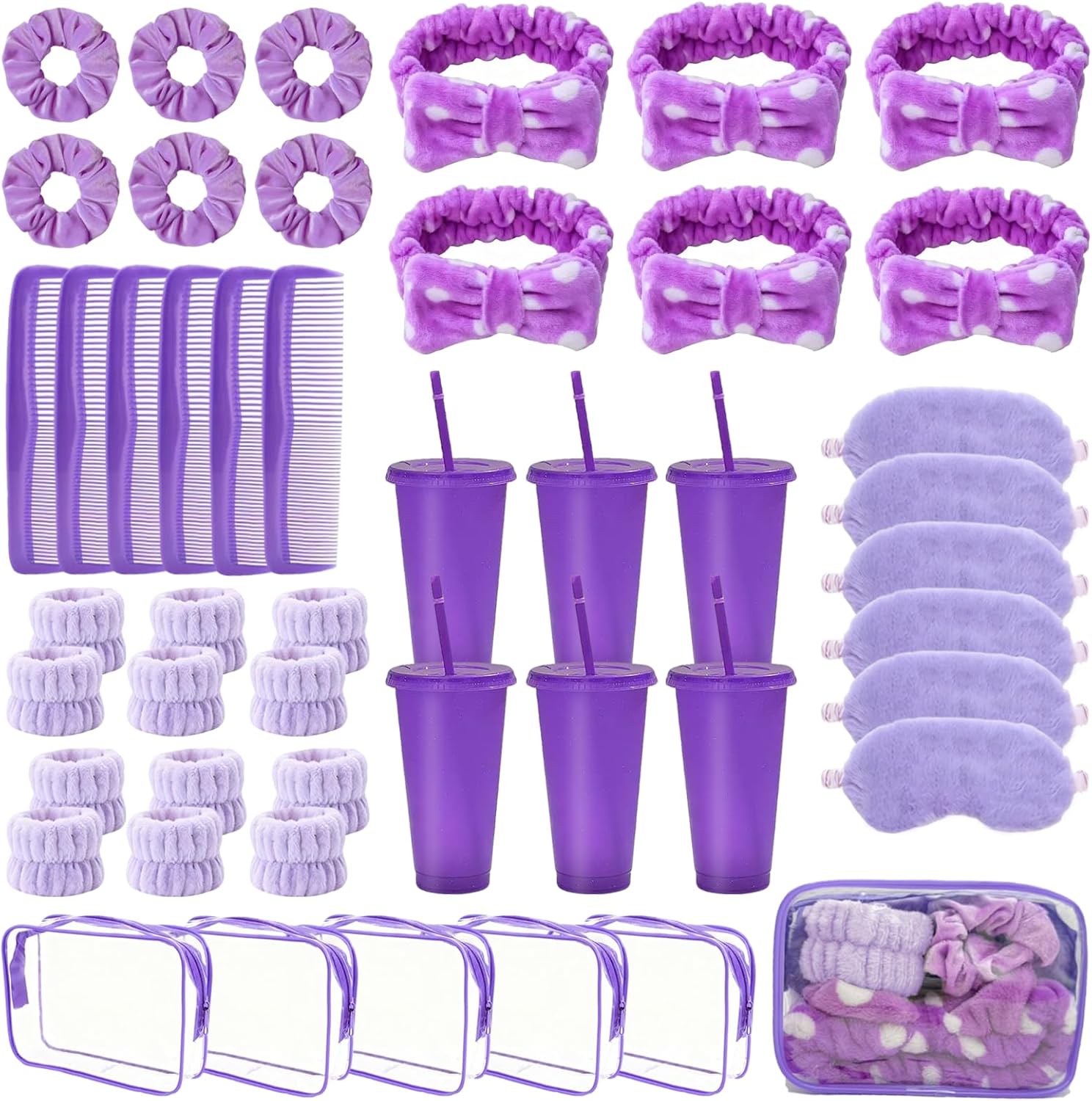 | Included Components | 12 Wristbands, 6 Clear Cosmetic Bags, 6 Eye Masks, 6 Glitter Cups, 6 Pink Bow Hairbands |