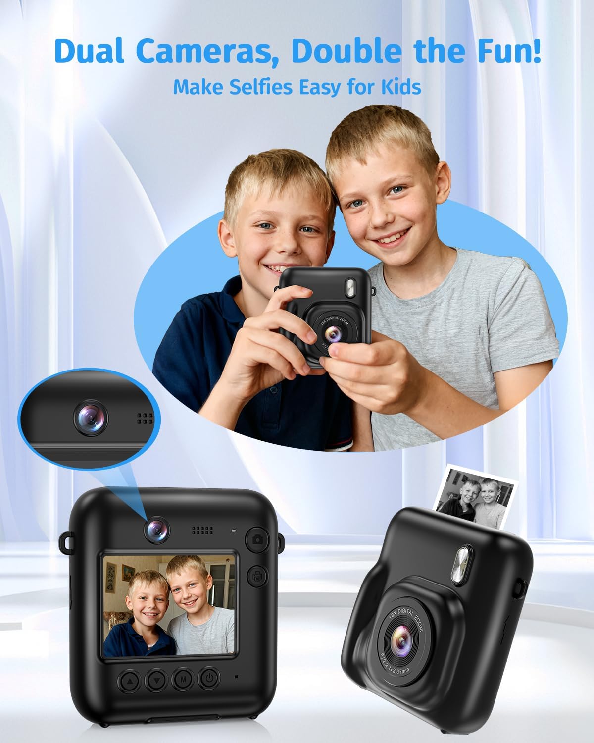 | Features | Dual Lens, 16x Zoom, Timer, Filters and Frames |