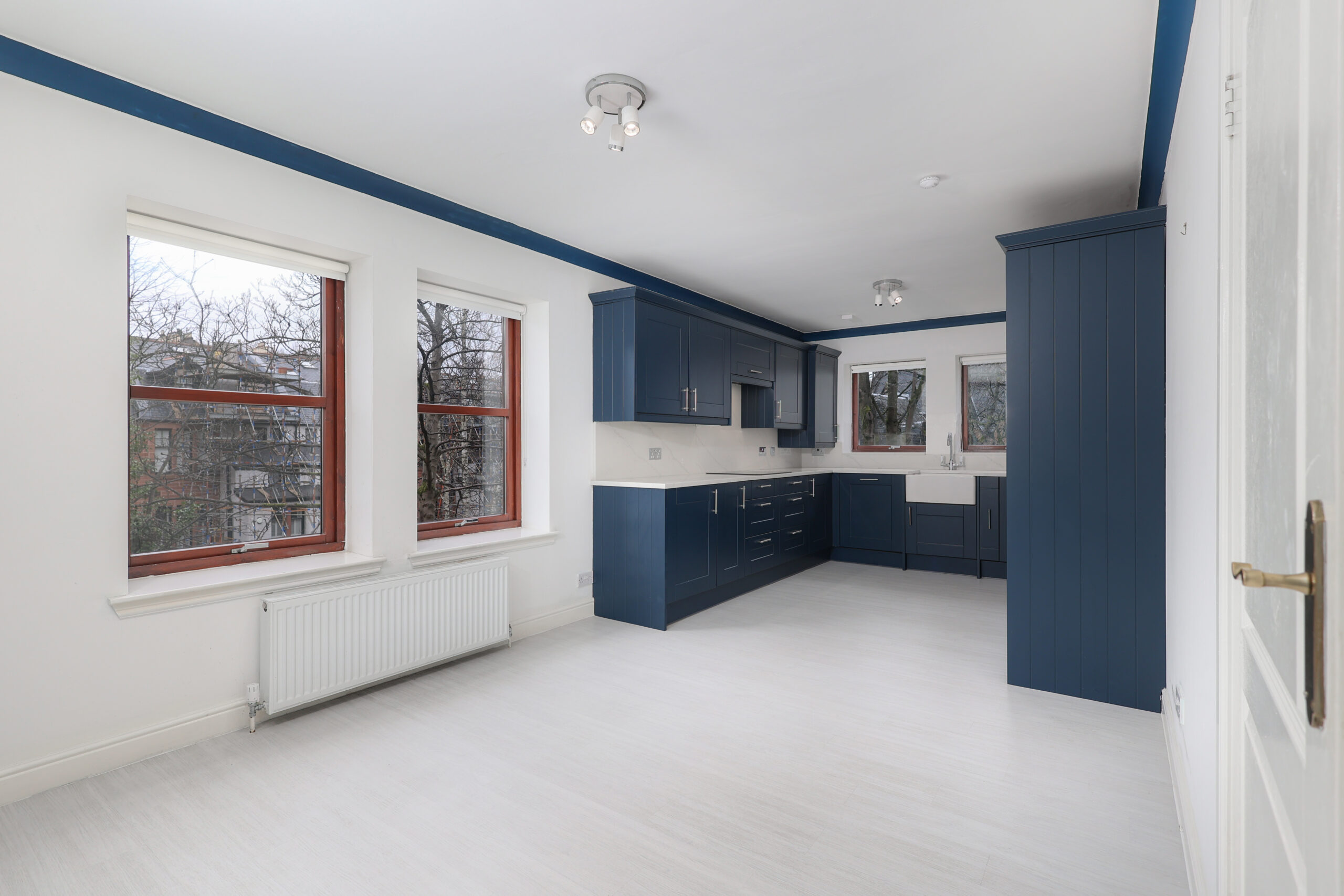 Defined by its generous proportions and striking bay window frontage, this first floor apartment within Westside Gardens offers a level of space rarely found in modern West End developments. Elevated garden views, strong natural light and privacy set it apart immediately.